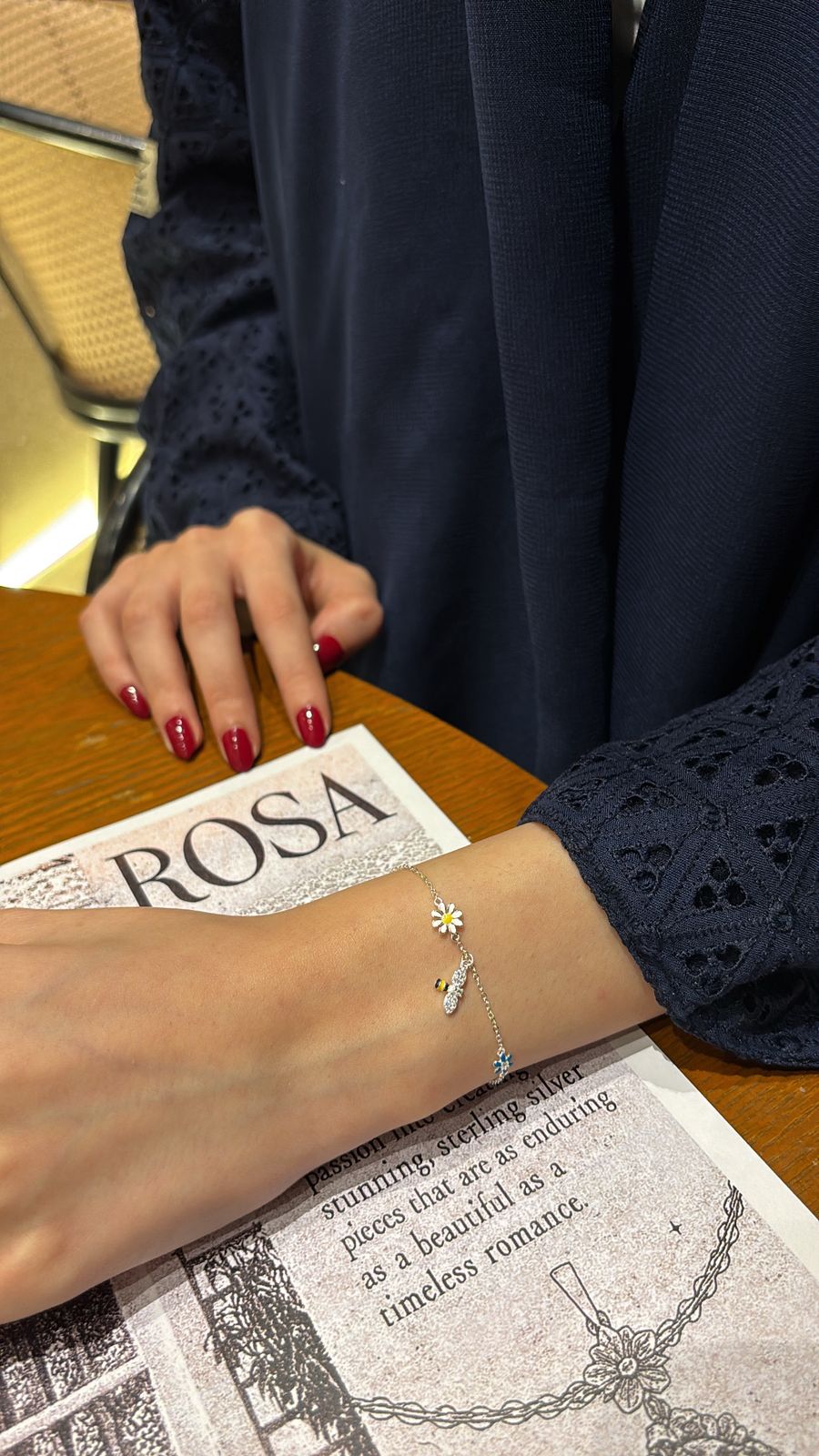 سوار من الفضة الإسترلينية 925 بزركون ومينا ملونة على شكل زهرة وحيوان (نحلة) مطلي بالذهب للنساء