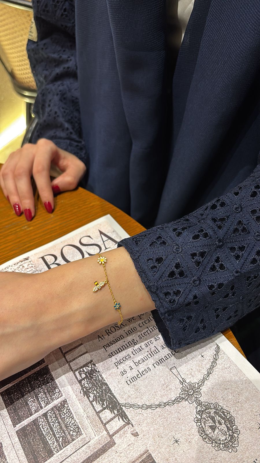 سوار موضة من الفضة الإسترلينية 925 مطلي بالذهب بأشكال نجمة وعين وزهرة وثلج للنساء